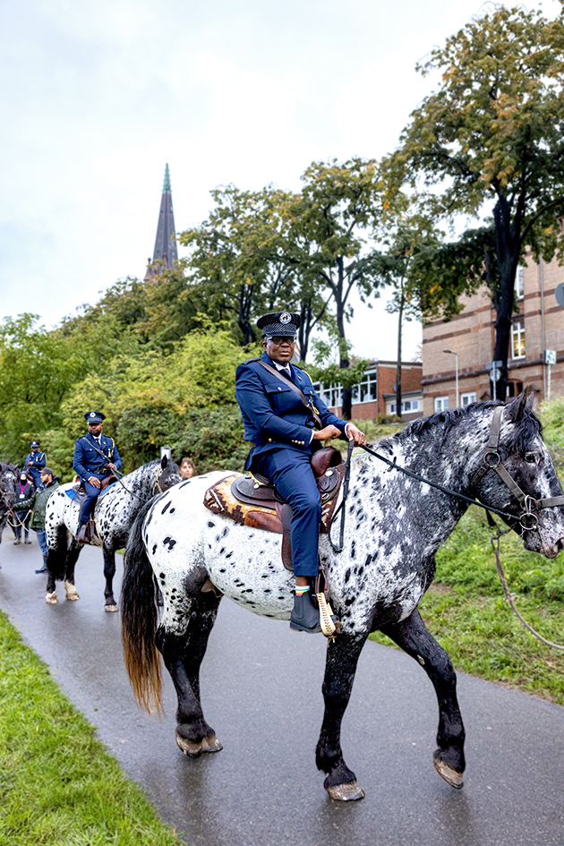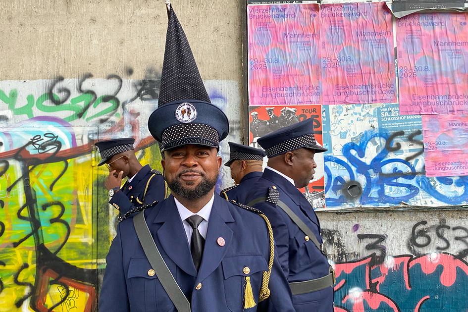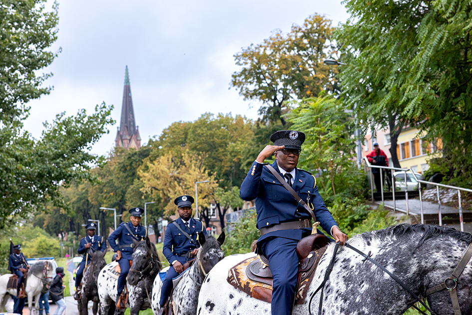 Gedenkzug mit Ovaherero-Reitern und Musiker*innen durch Mannheim